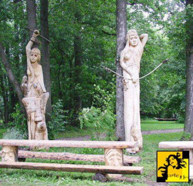 rzeźby znajdują się w Galindii wykonane z jesionu/ 4,80 i 4,20 m/