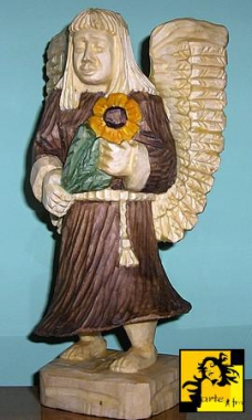 Praca "Anioł" ,wykonana w drewnie lipowym wys.ok.30cm.Anioł trzymający słonecznik trochę nie odpowiedni jak na tę porę roku.