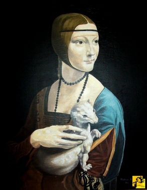 Olej na desce ~55x43 (deska nie jest równa) reprodukcja wg Leonarda da Vinci