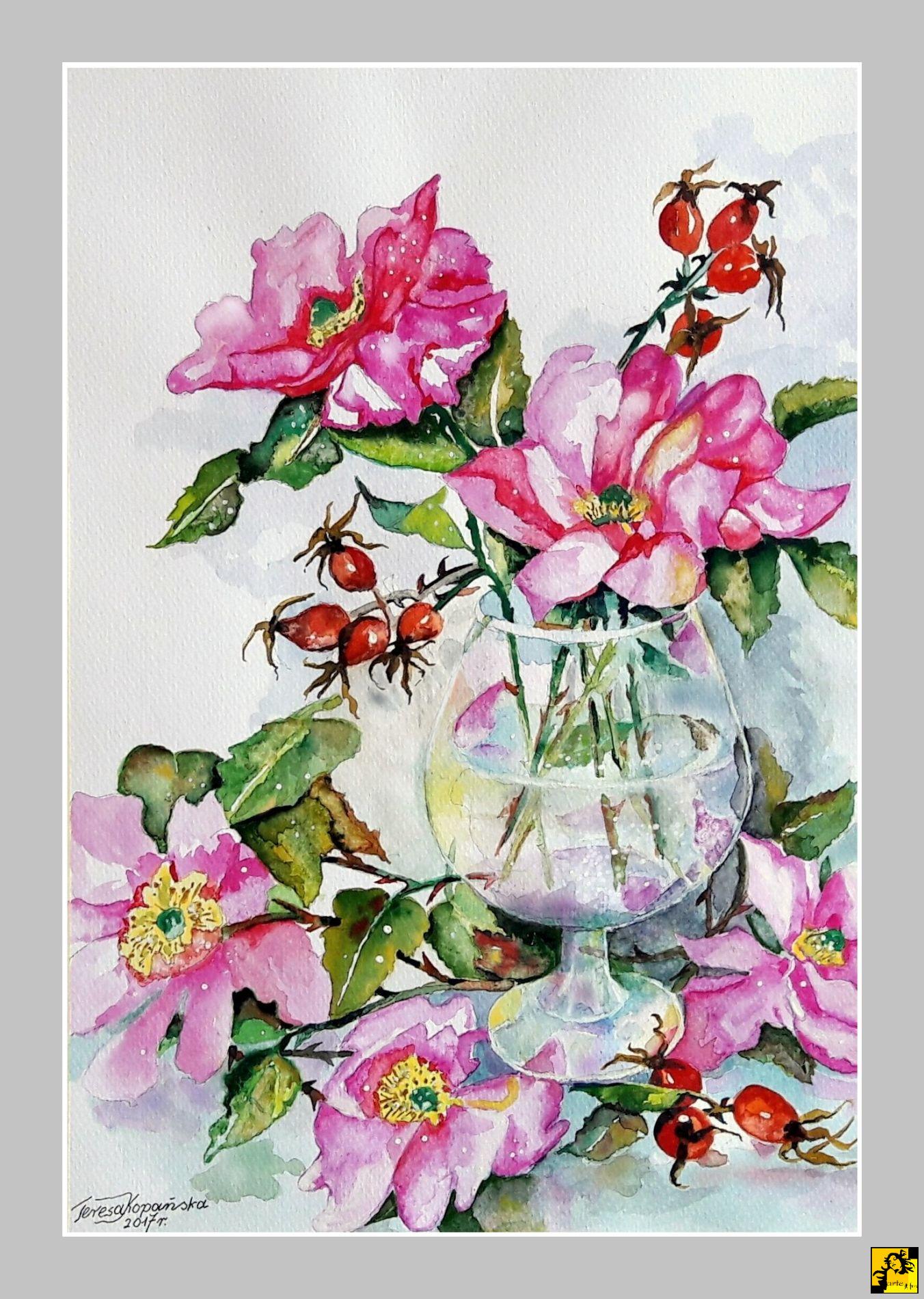 Dzikie Róże - akwarela A4 2018 r. autor: Teresa Kopańska |