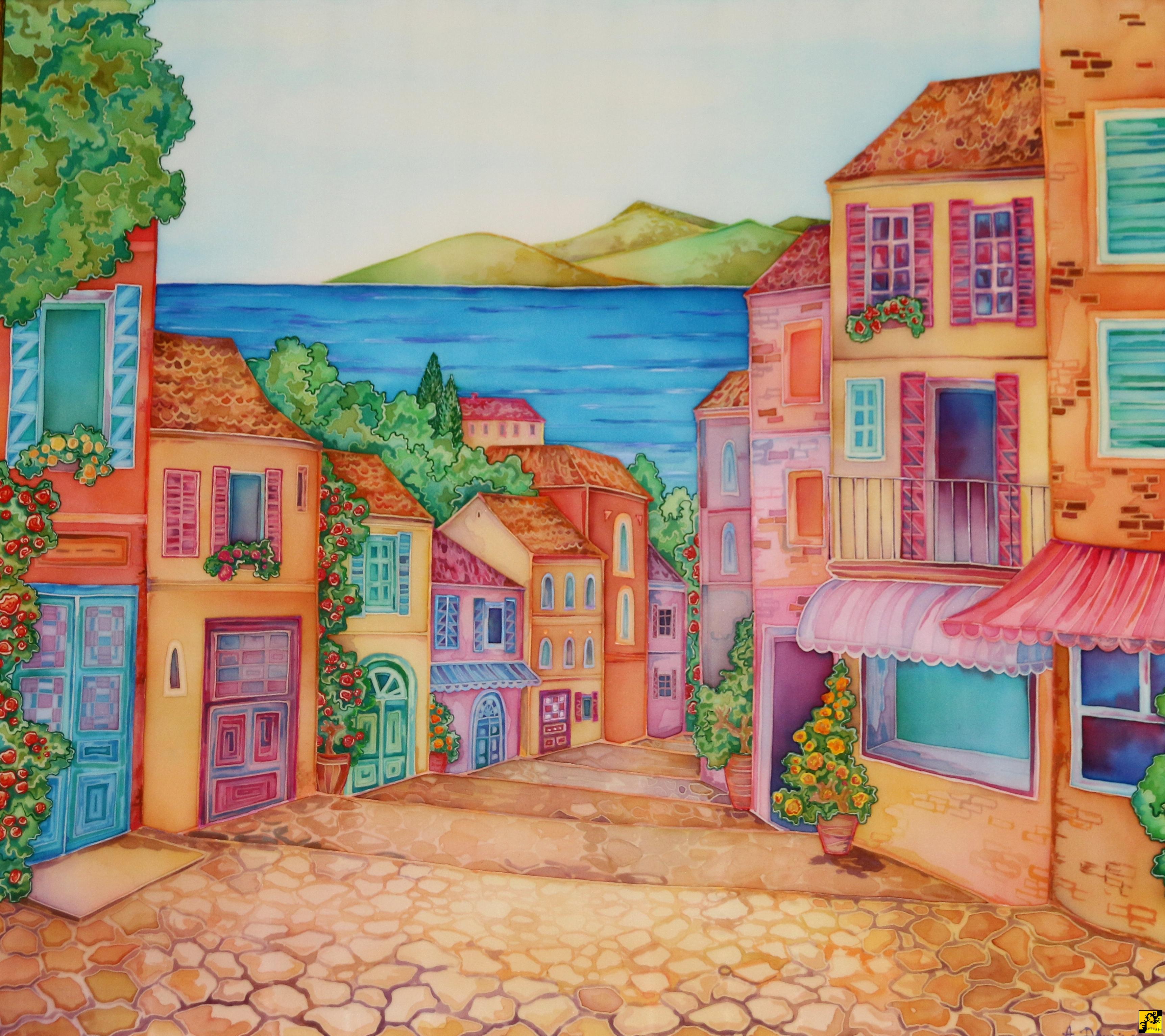80x90, jedwab, 2018r. Obraz oprawiony w ramę. |