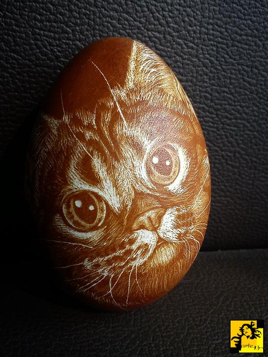 farbowana gęsia wydmuszka z wydrapanym kotem, szersze wzory źle wychodzą na zdjęciu |