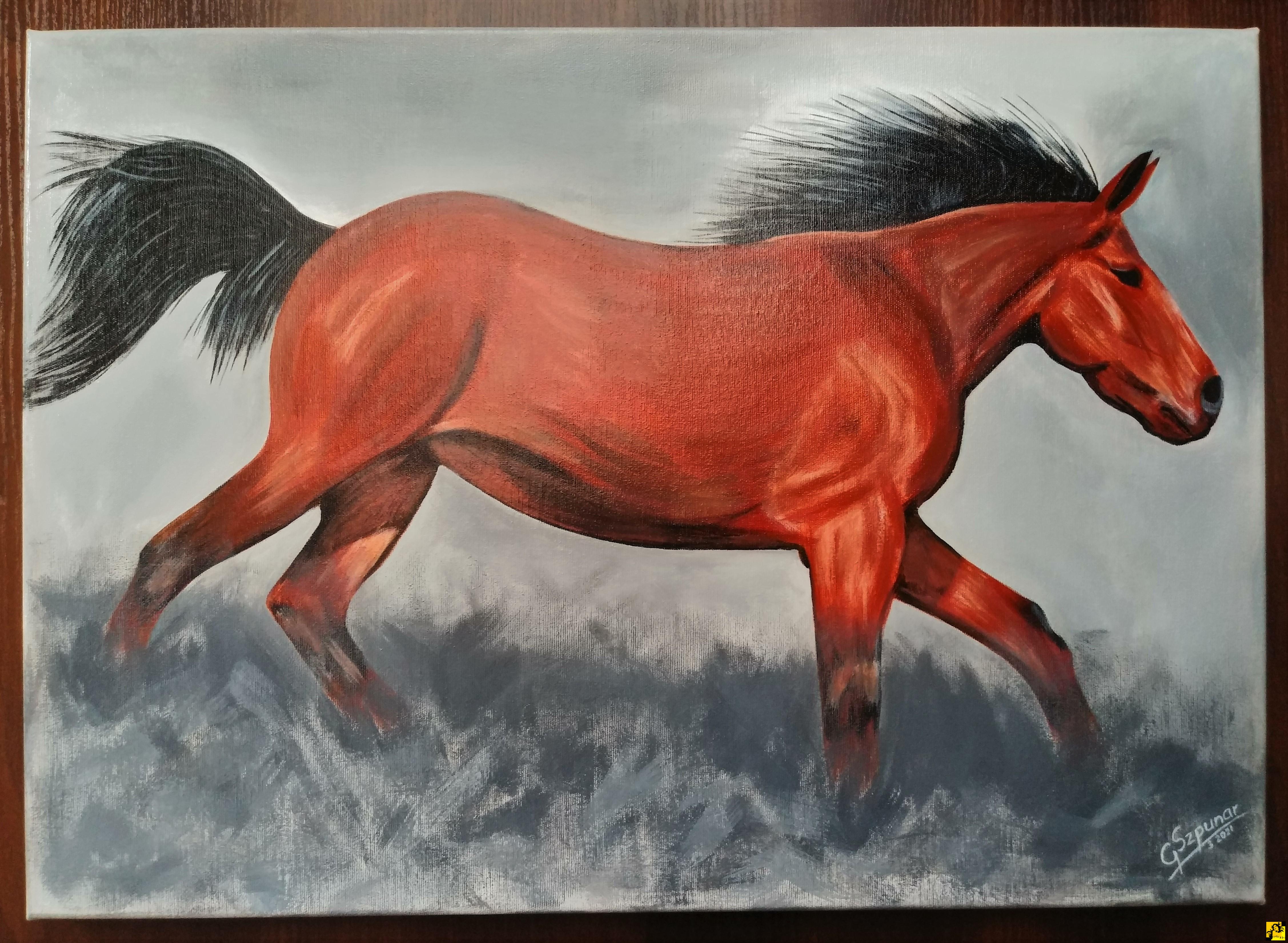 Akryl na płótnie 50x70, boki zamalowane jako kontynuacja obrazu. Zabezpieczony werniksem w połysku. Posiada zawieszkę z tyłu, nie wymaga ramy i jest gotowy do zawieszenia na ścianie. Sygnowany podpisem oraz datą wykonania w prawym dolnym rogu. Kolory na zdjęciu mogą się nieznacznie różnić w zależności od indywidualnych ustawień ekranu. |