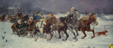 "KULIG"-olej , płótno 51,5X119,5 cm , 2016 r - autorska kopia wg Wierusza - Kowalskiego . Obraz dla syna Marcina.