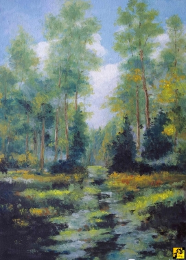 Las na podstawie obrazu Kazimierza Bać. Olej na desce, 35x45 cm