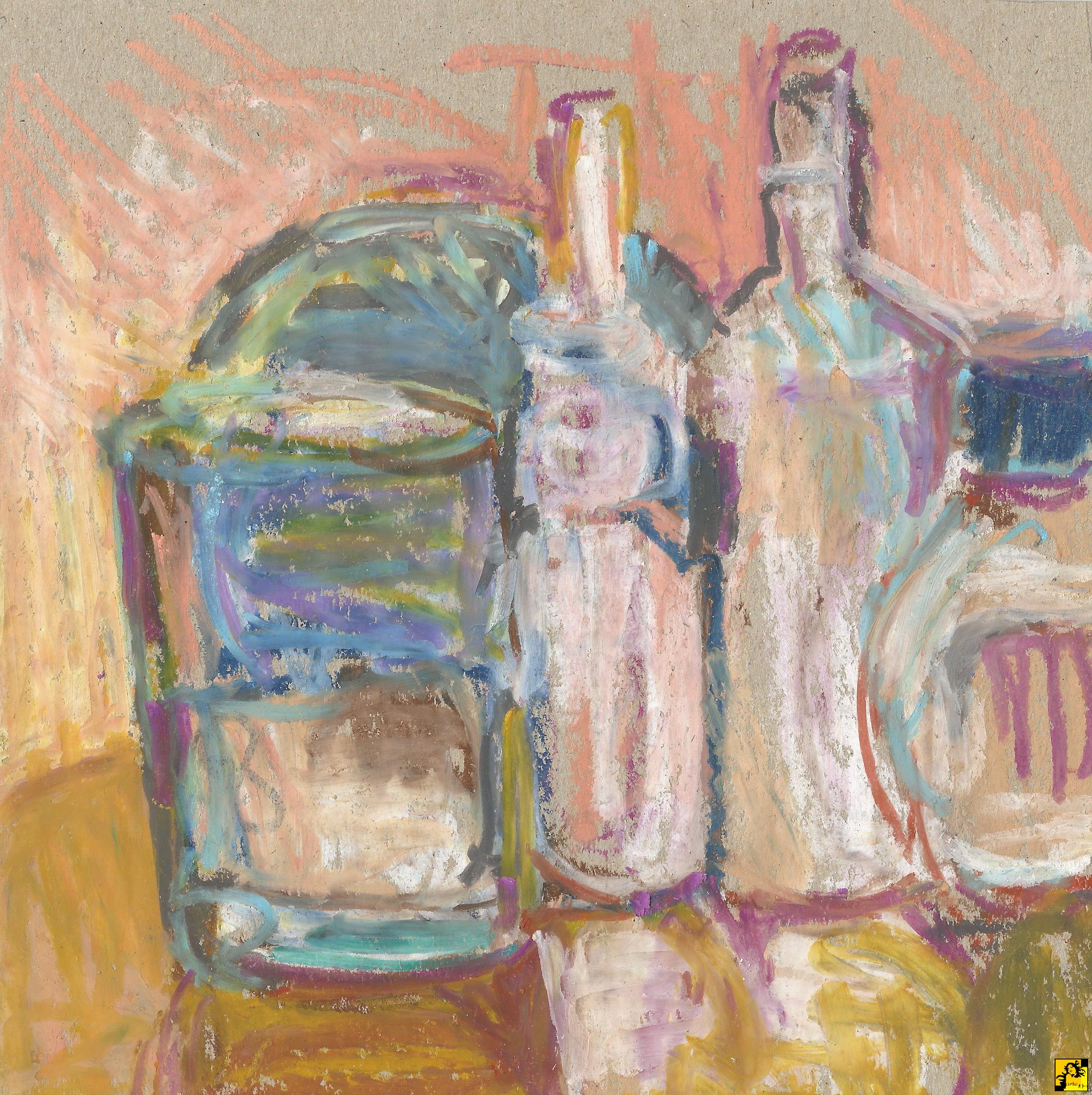 naczynia, 10.5 x 19.6, pastele olejne, karton szary, 2019 |