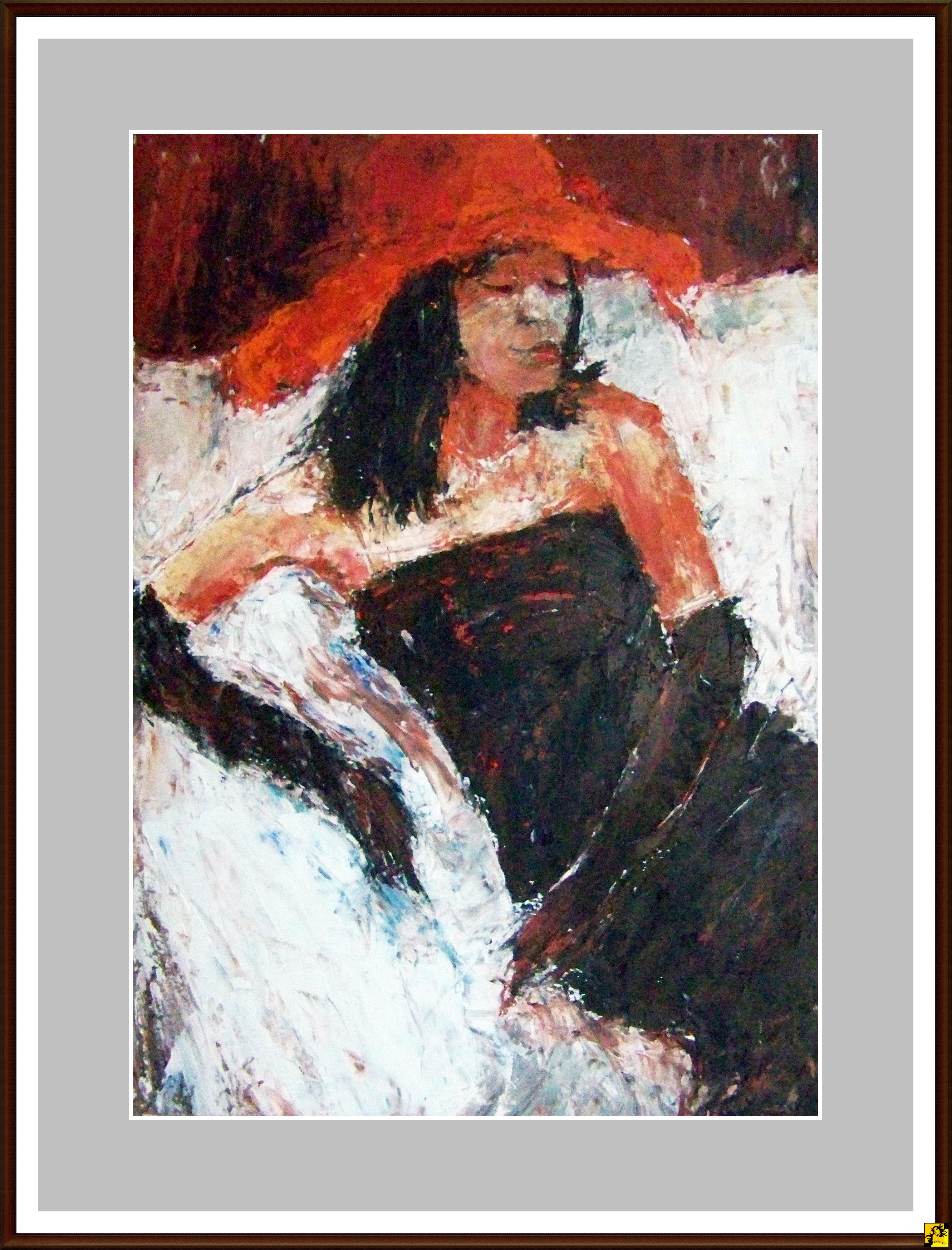 Obraz ręcznie malowany / " Czerwony kapelusz 5 " Wymiar; 24 x 34`cm tektura farby olejne |