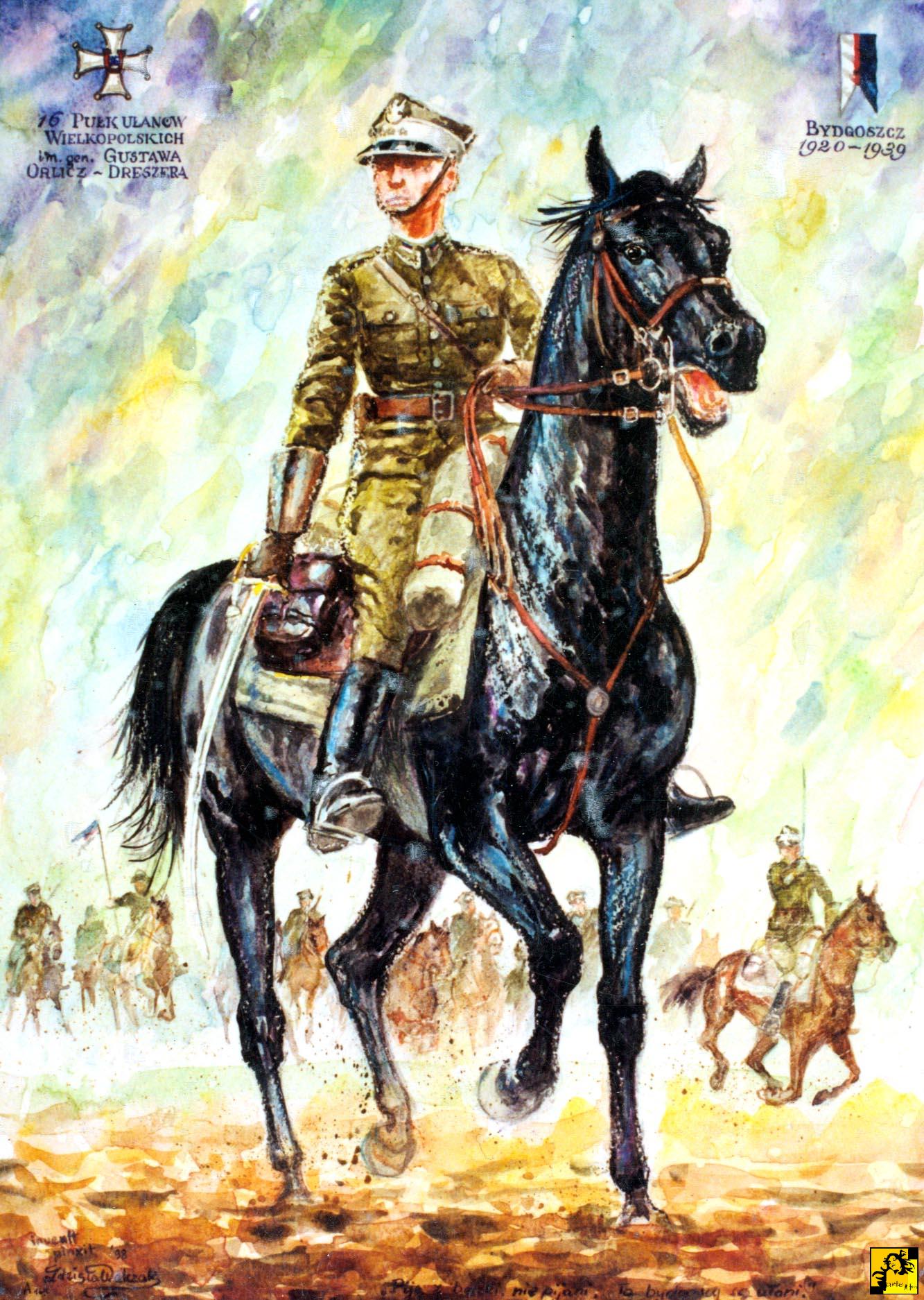Rotmistrz 16 Pułku Ułanów Wielkopolskich im. gen. Gustawa Orlicz-Dreszera. Bydgoszcz 1920-1939" akwarela , 44x32 cm, 1998 r. |