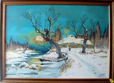 olej 50x70 Na podstawie obrazu "Zachód słońca zimą" Juliusz Klewer
