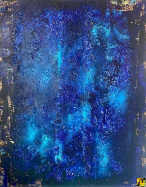 Obraz z kolekcji “Głębia” zachwyca głęboką paletą niebieskości – od turkusu po granat – z subtelnymi akcentami złota na krawędziach, tworzącymi efekt postarzenia. Intensywna i wyraźna tekstura przypomina morskie głębiny lub kosmiczną przestrzeń. Smugi i plamy farby nadają dynamikę, a złote detale dodają elegancji. Obraz ten zaprasza do kontemplacji i interpretacji. Inspirowany przepięknym miejscem – Blue Hole. Akryl na płótnie, werniks, sygnatura artysty z przodu obrazu, zamalowane boki, obraz teksturalny, wymiary: 80x100 cm Kolekcja inspirowana oceanem i freedivingiem, który jest pasją artysty.